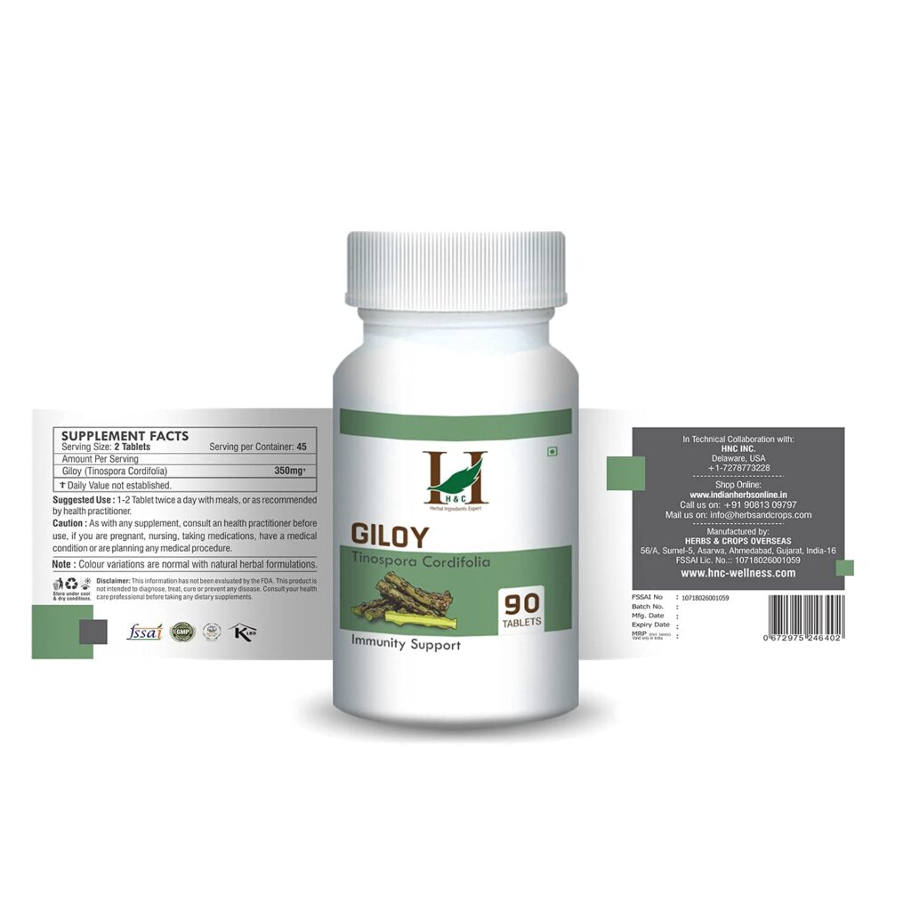 H&C Herbal Ingredients Expert Guduchi/Giloy Tablets 350mg 90 Tablets | For Strengthens Immunity Wellness & supports