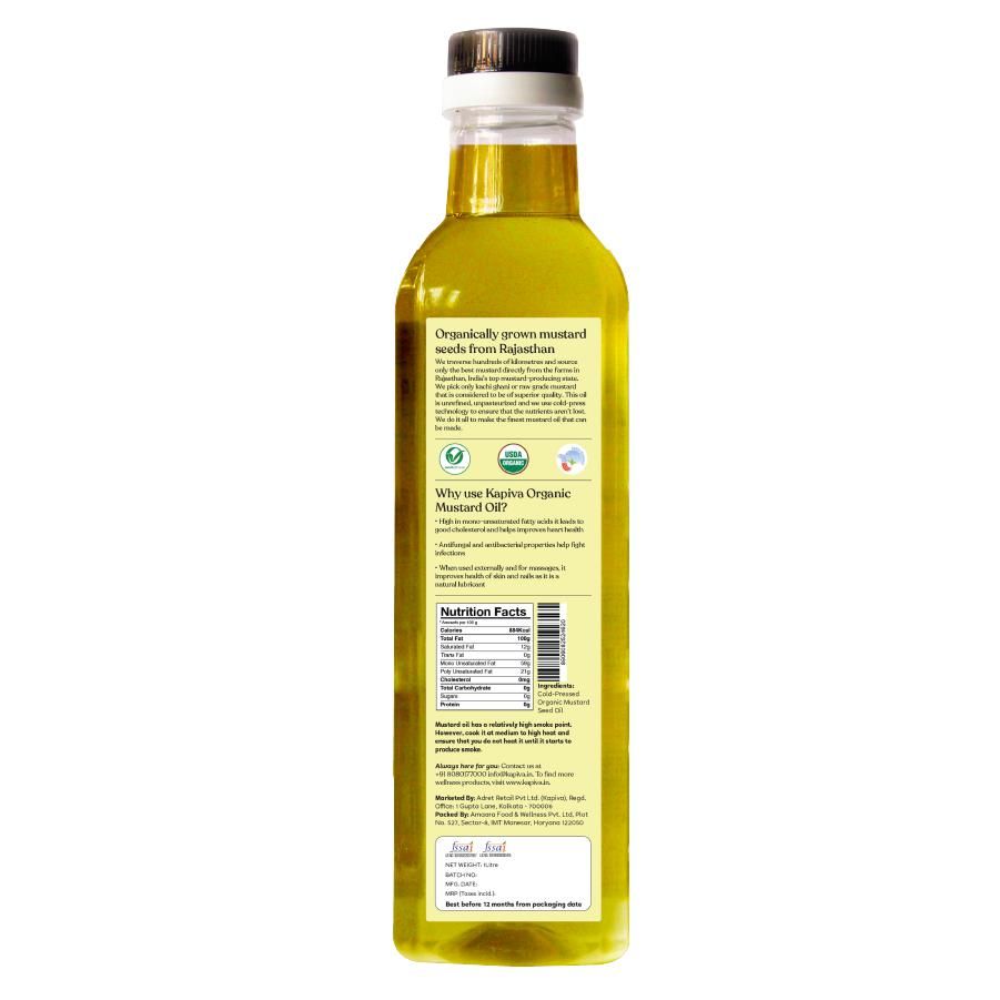 Kapiva Organic Mustard Oil 1L for blood pressure, bad cholesterol levels, promoting heart health heart care