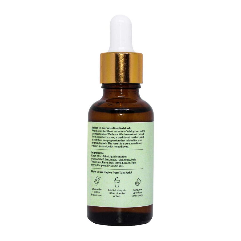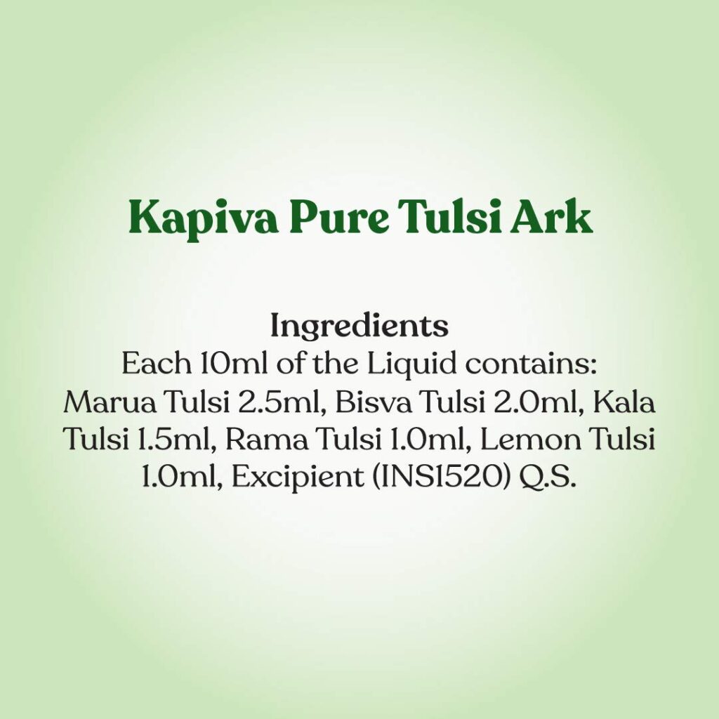 Kapiva Pure Tulsi Ark contains tulsi and it has many health benefits such as providing relief from stress, reducing high blood pressure, and fighting respiratory disorders.