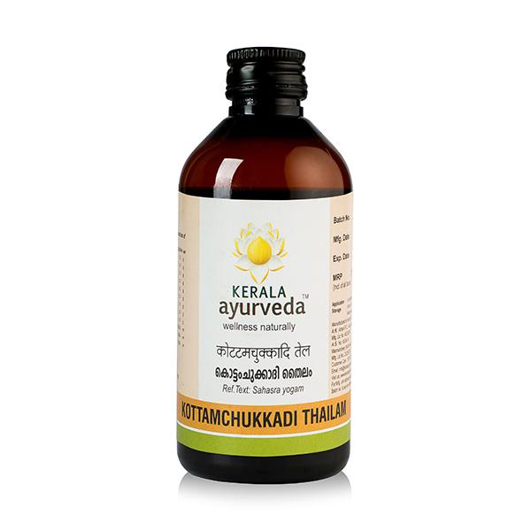 Kerala Ayurveda Kottamchukkadi Thailam is renowned for its therapeutical benefits on vata disorders. Highly acclaimed for its pain relieving action, Kottamchukkadi thailam helps subside inflammation in joint disorders. It is beneficial in sciatica, spondylosis, arthritis, myalgia and tennis elbow. Kottamchukkadi Thailam helps reduce numbness and stiffness in vata predominant conditions.