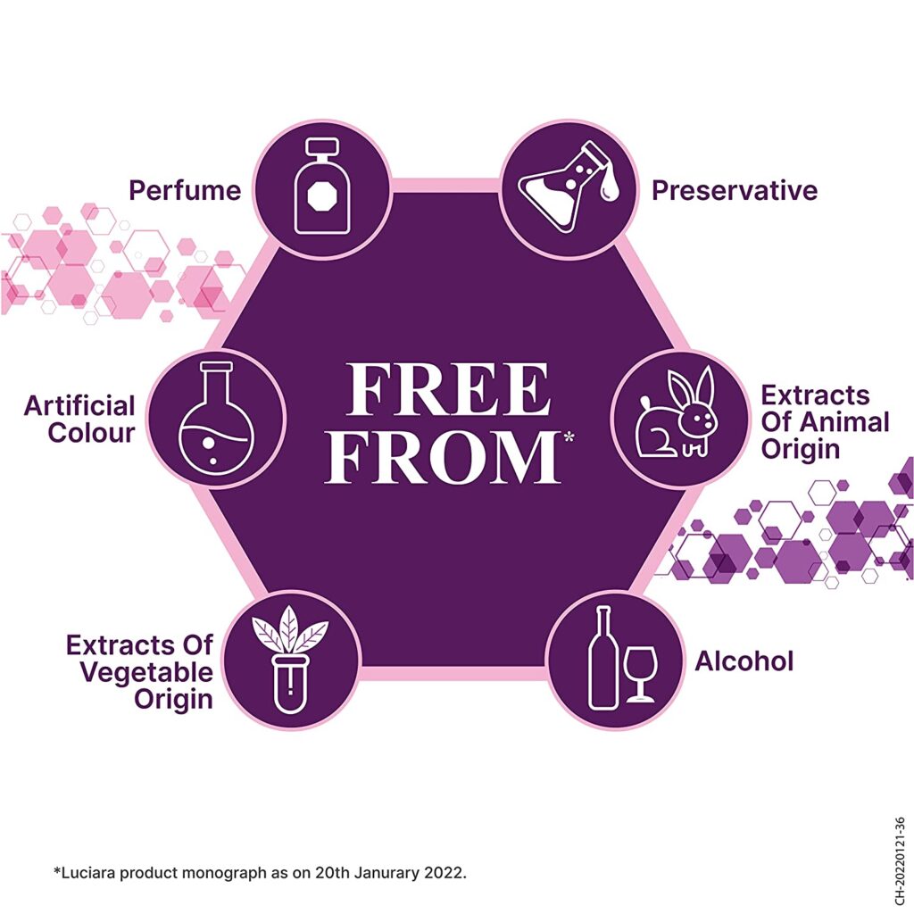 • Free from preservatives, perfume, alcohol, and artificial colours