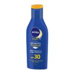 Get instant protection from harsh sunrays with NIVEA Protect and Moisture Sun Lotion SPF 30. Its fast absorbing formula with advanced collagen protection prevents wrinkles.