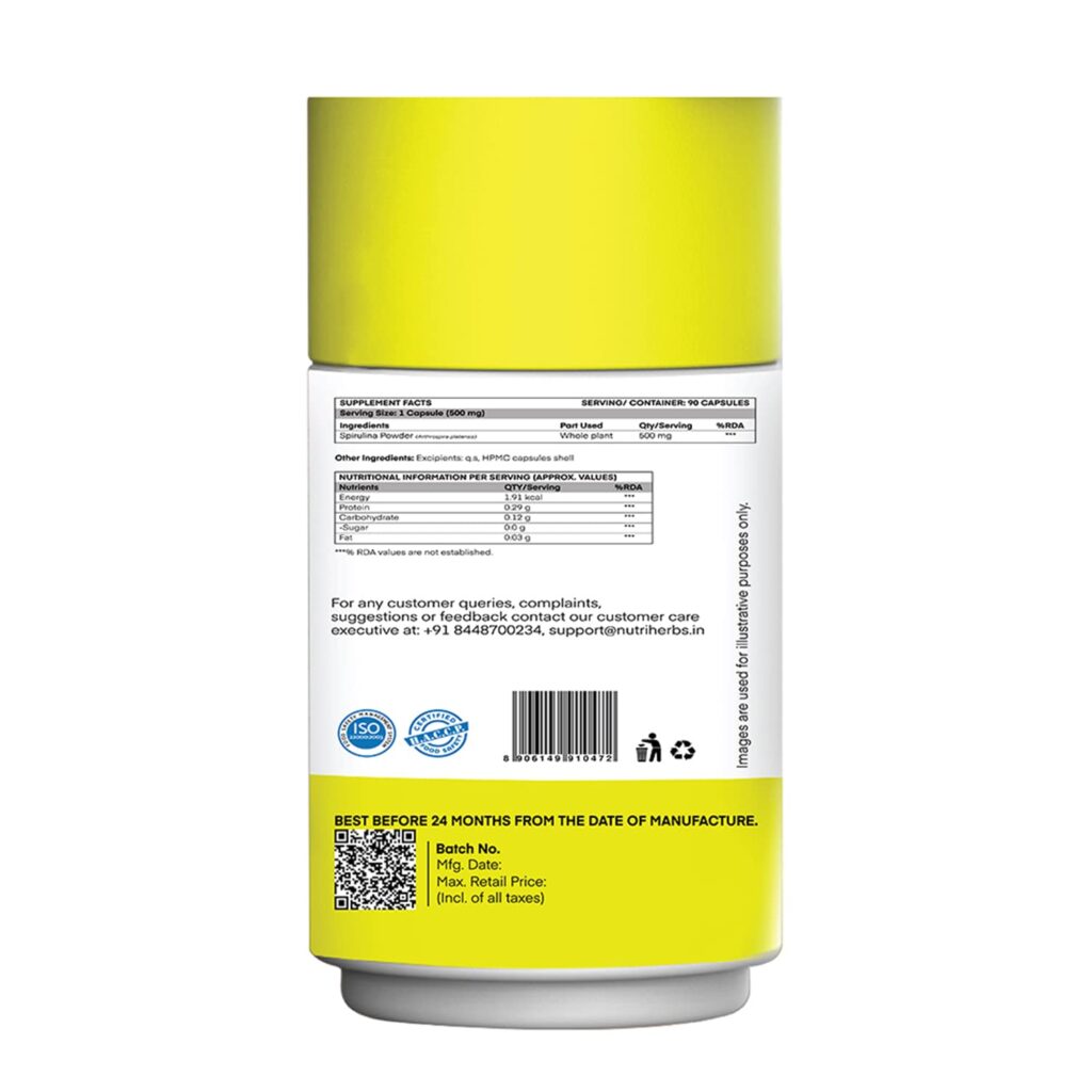 Nutriherbs Organic Spirulina 500mg 90 Capsules For Immunity, Gut Health
