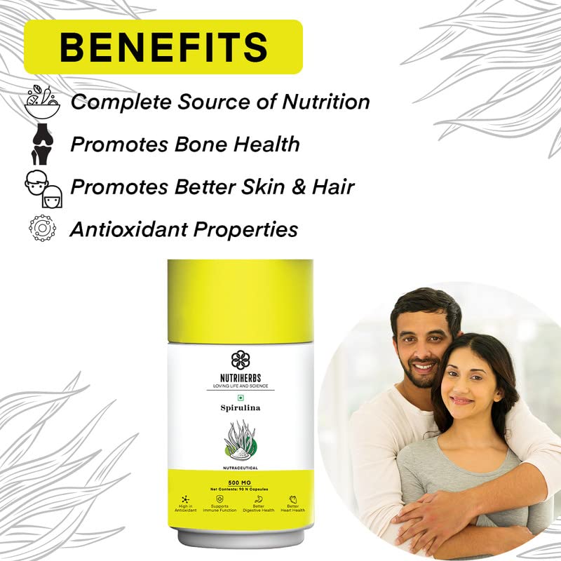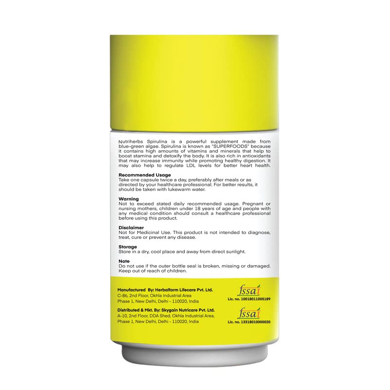 Nutriherbs Superfood Spirulina 500gm Capsule contains spirulina that is a microalga that has been used due to its high nutritional value and prevents many health problems. It is loaded with nutrients that can have powerful effects on the overall body. It is also known as “SUPERFOODS”, having vitamins and minerals. It also contains beneficial fatty acid as well as high antioxidant levels that can help protect the body against oxidative damage.