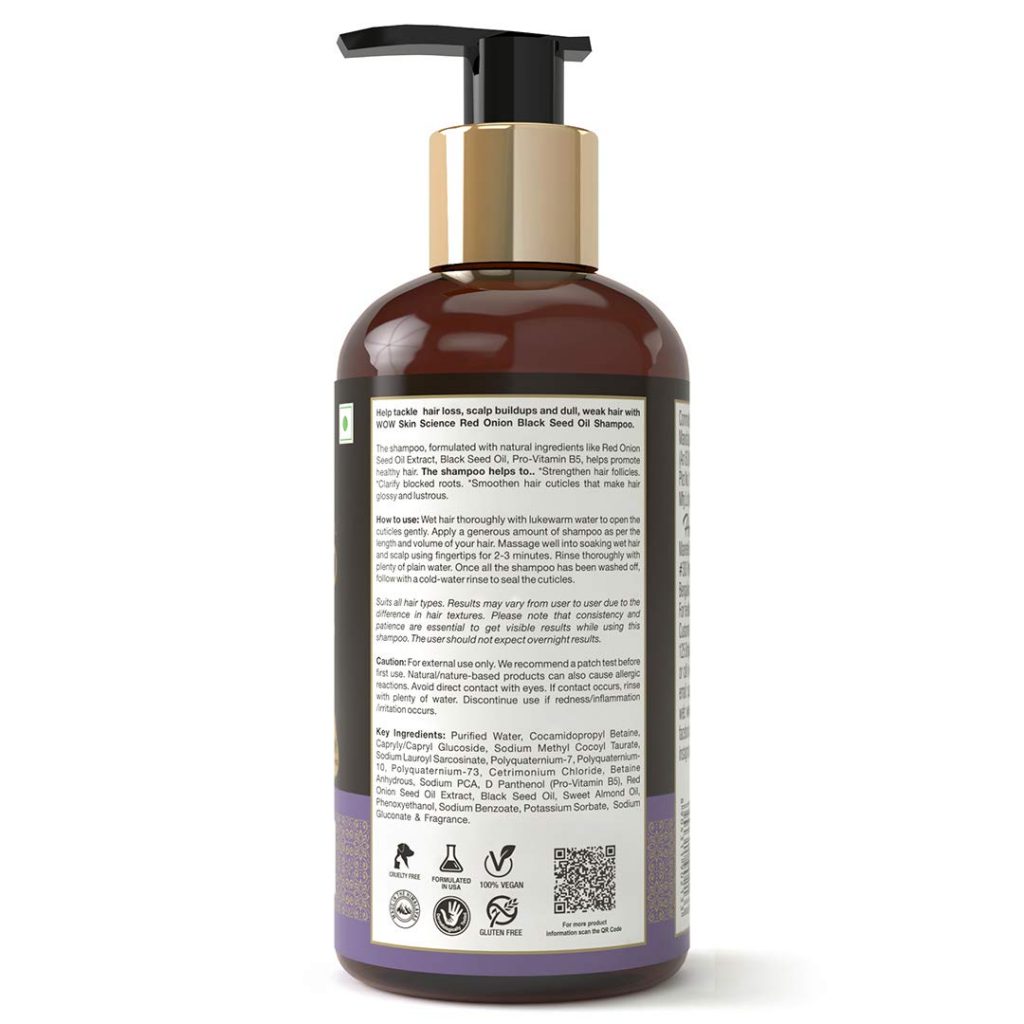 - Get strong and lustrous hair with wow skin science red onion black seed oil shampoo. This shampoo helps to revive your tired scalp and hair