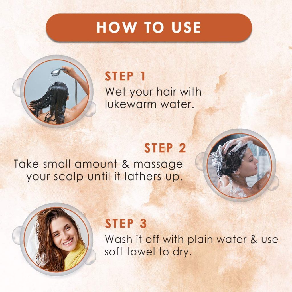 - Step 2 – Apply on your scalp and hair length. Massage the shampoo into your scalp with mild pressure. Continue for 2 to 3 minutes then rub the lather down the length of your strands to clean them.