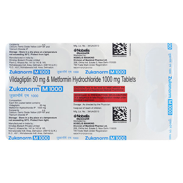 Zukanorm M 1000 Tablet is a combination of two medicines that work together in different ways to lower your blood glucose levels. Lowering blood glucose levels is an essential part of managing diabetes. If you can control your blood glucose level, your risk of getting any of the serious complications of diabetes such as kidney damage, eye damage, nerve problems, and loss of limbs is also lowered. Additionally, proper control of diabetes can also reduce the risk of heart disease and stroke. Taking this medicine regularly along with proper diet and exercise will help you live a normal, healthy life. You should keep using this medicine for as long as it is prescribed because it is protecting your future health.
